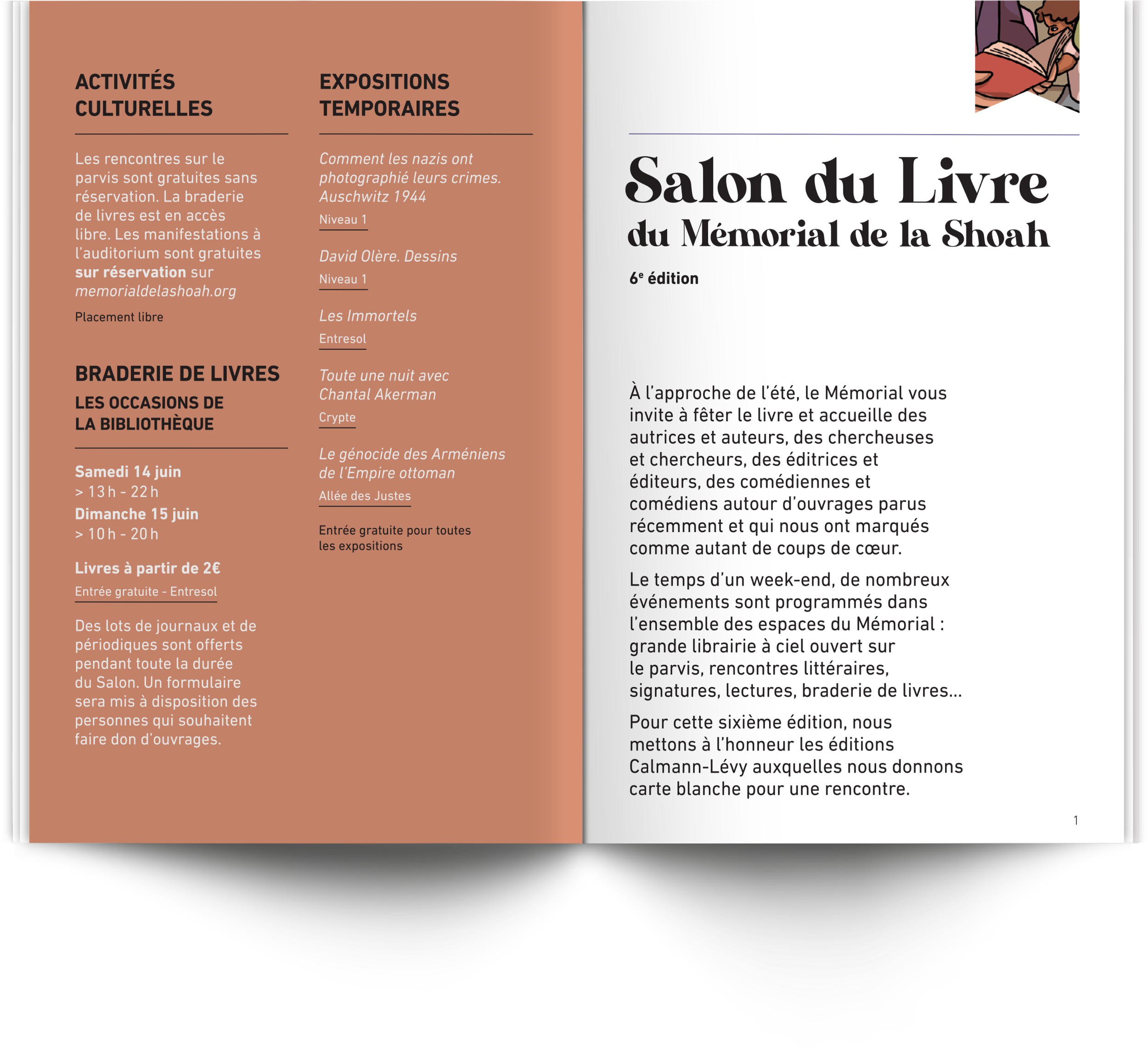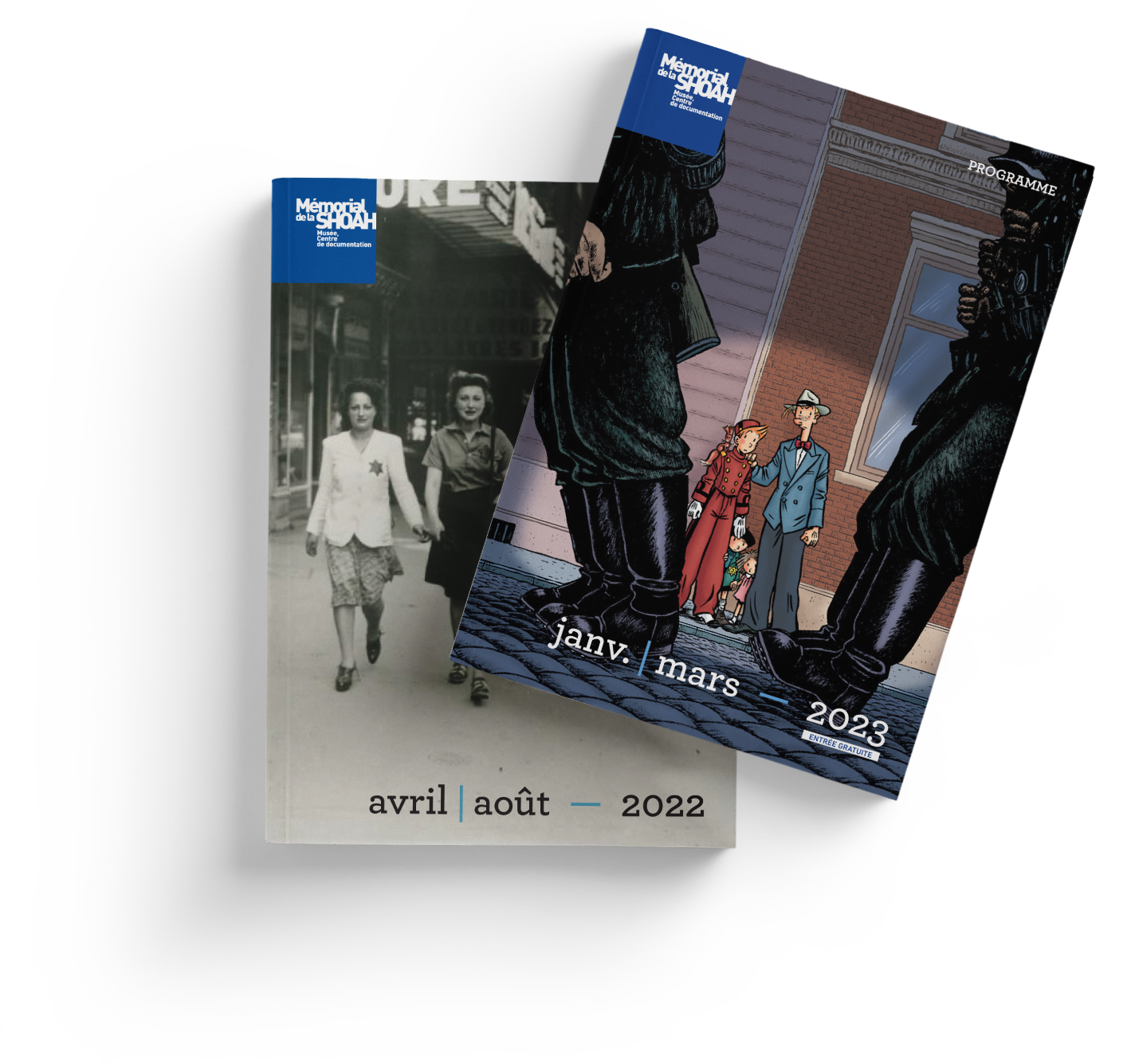 The Shoah Memorial in Paris keeps the memory of the Holocaust alive through commemorations, workshops, exhibitions, conferences, screenings, sharing sessions and many other events. They are presented through a quarterly programme, and specific events are highlighted through flyers, leaflets, posters and pull-up banners.
